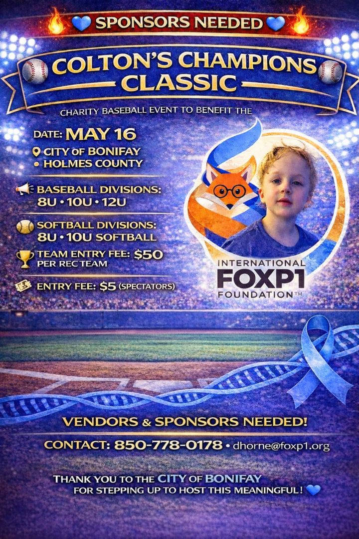 The City of Bonifay, in partnership with the Bonifay Police and Fire Departments, has stepped up to host the inaugural Colton’s Champions Classic on Saturday, May 16 at the Bonifay Recreation Center, a charity baseball tournament benefiting the FOXP1 Syndrome Foundation.
